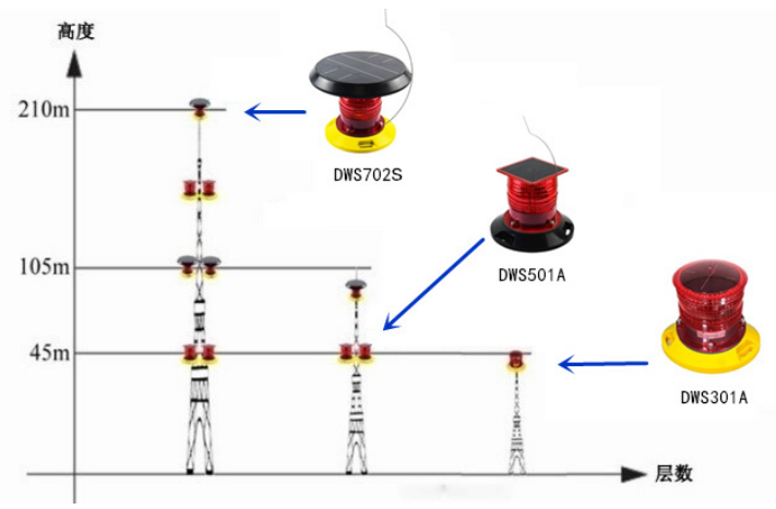 中层设置低光强B型障碍灯DWS501A。 |